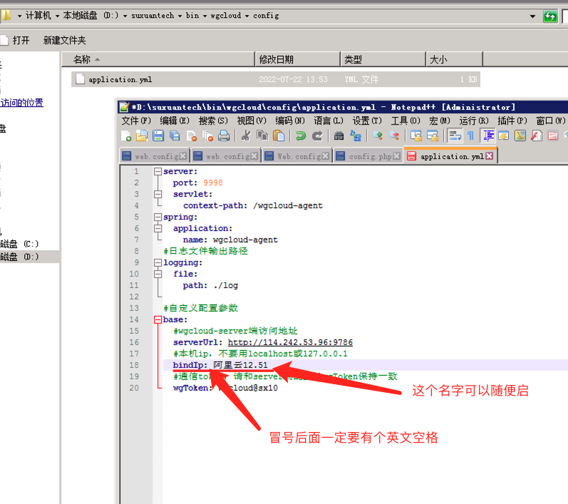 打开目录下的:config/application.yml文件【尽量使用notepad++打开】