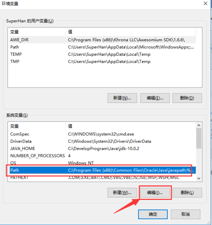5、 然后选中“系统变量”中的“Path”变量,点击“编辑”按钮,将刚才创建的JAVA_HOME变量添加到“Path”变量中。