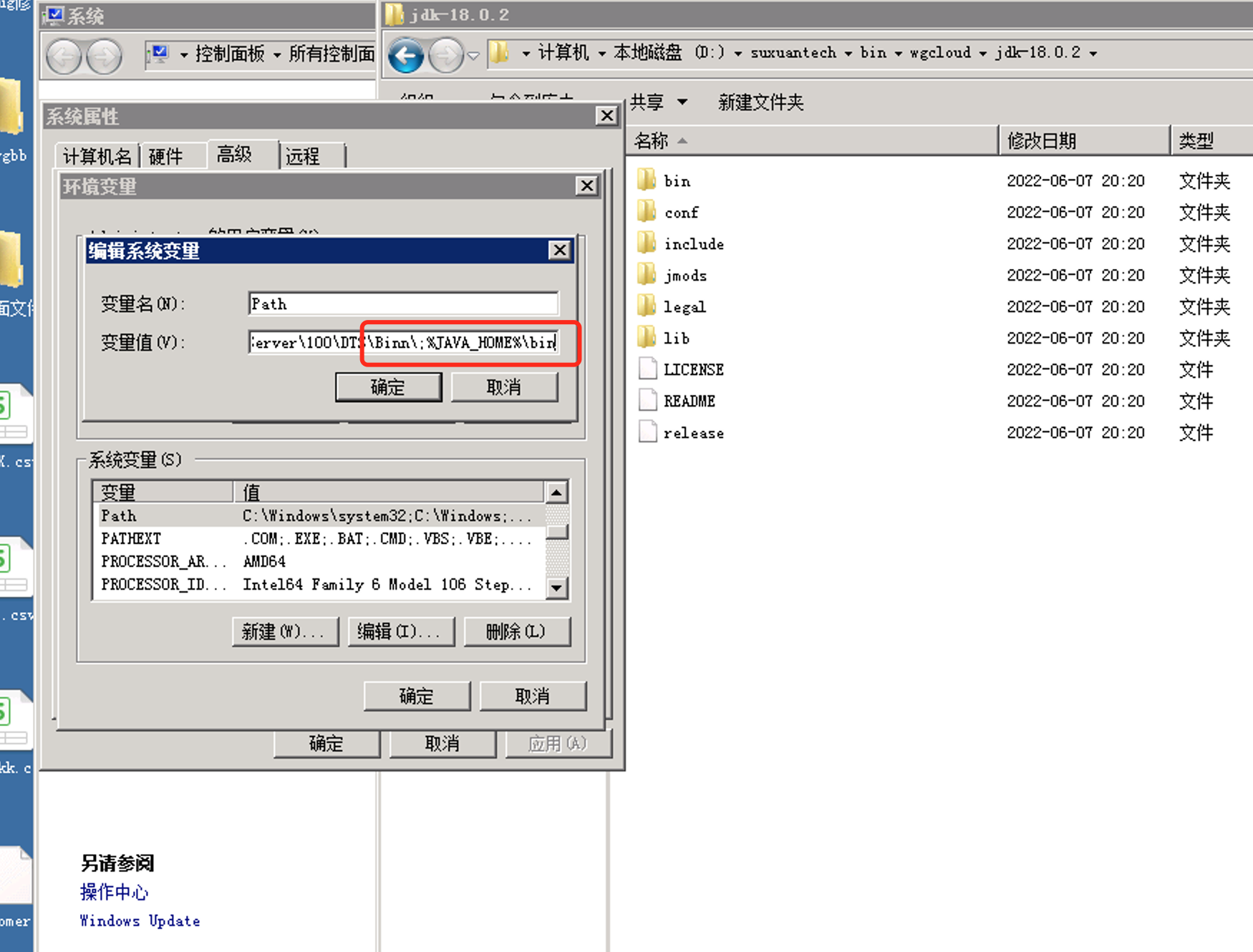 变量值为JDK的安装路径,到bin目录的上一层即可。比如d:\suxuantech\bin\wgcloud\jdk-18.0.2