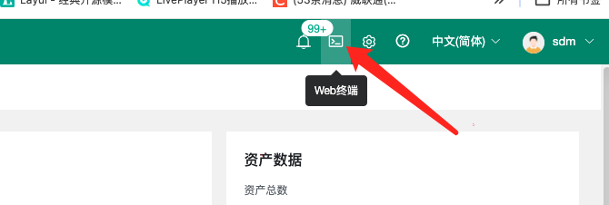 - 进入主界面后,点击左边的web终端图标或右上角 web终端图标,可以进入到远程界面