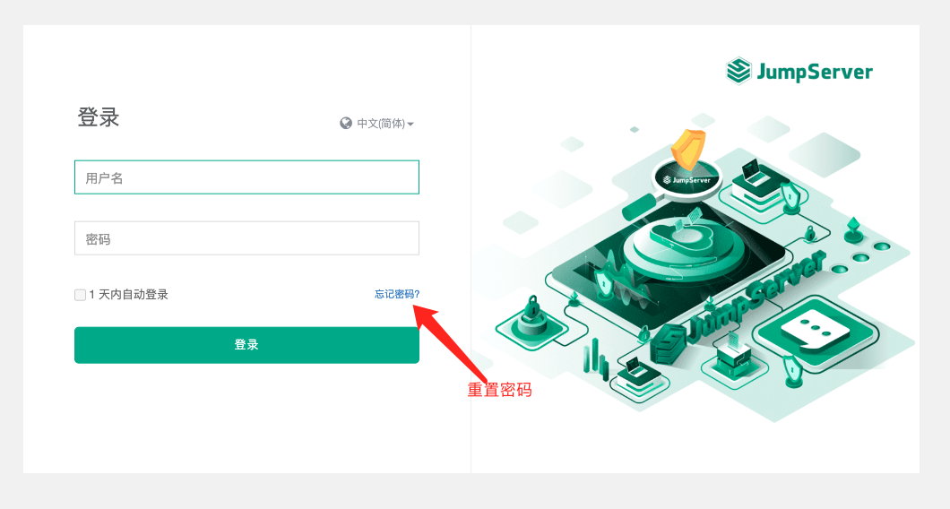 - 输入帐号和密码进行登录,如果忘记帐号密码,可以使用开通帐号时,所使用的邮箱重置密码,