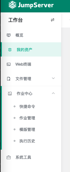 主界面的左边菜单->我的资产,可以查看到本人有权限的服务器列表,列表里的服务器都可以在web终端里面进行连接