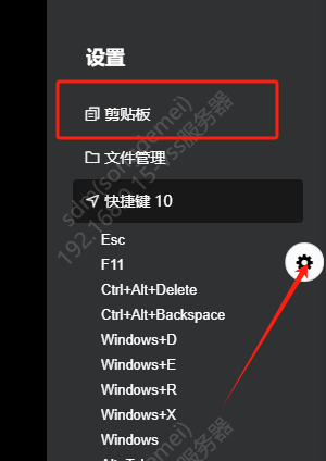 远程连接成功后,在界面的右边会有一个圆形的齿轮图标,点击打开菜单,选择:剪贴板
