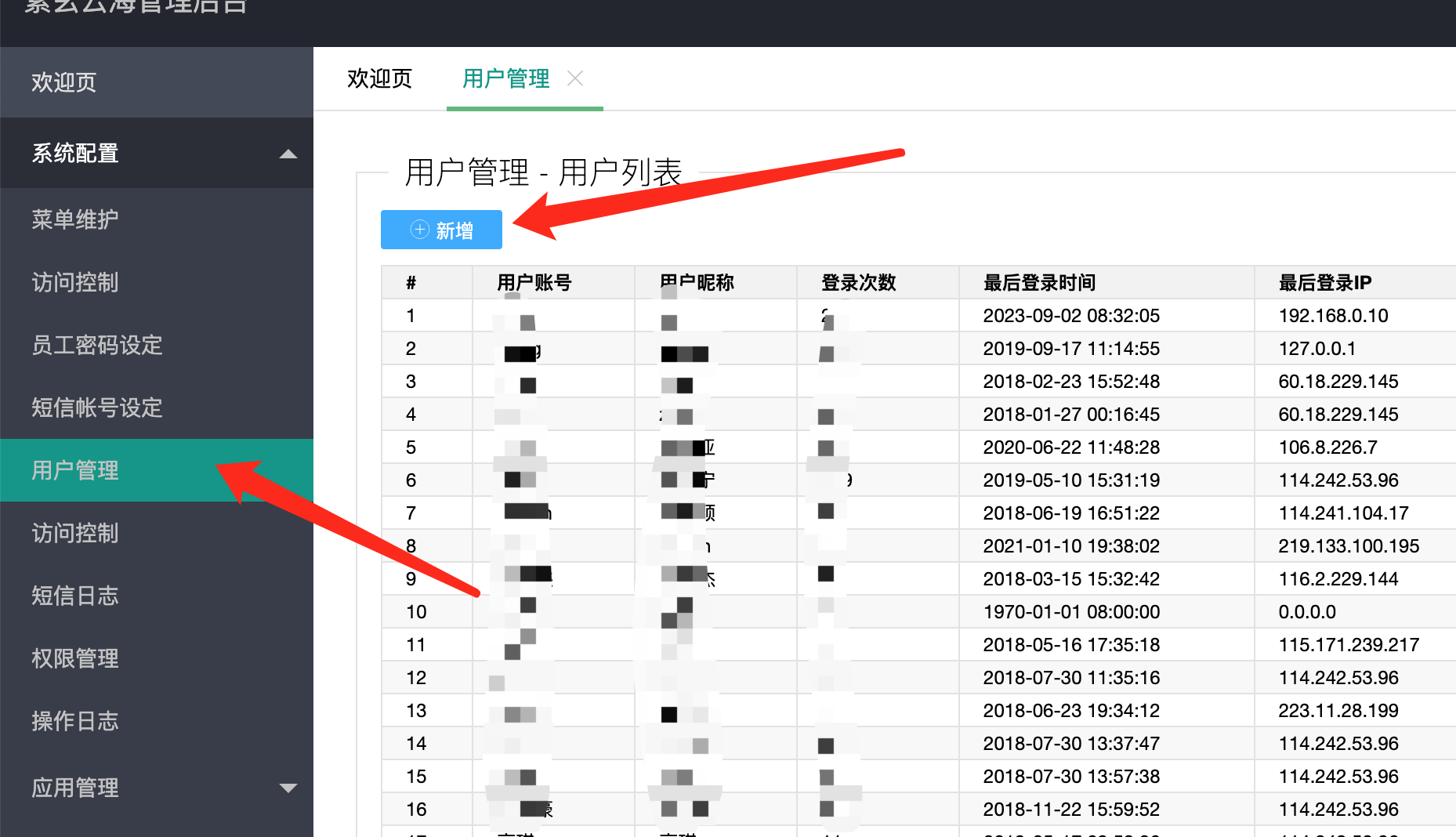 登录MC,左侧选择系统配置–>用户管理添加MC内置帐号和密码 注意,此处设置的帐号,不能与员工帐号重复,此处设置的帐号只能登录MC,不能登录其他系统 作者:宋德美 创建时间:2023-09-02 09:28最后编辑:宋德美 更新时间:2024-06-26 11:56
