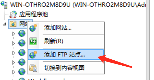 1、打开IIS,在网站节点右键,选择添加FTP站点