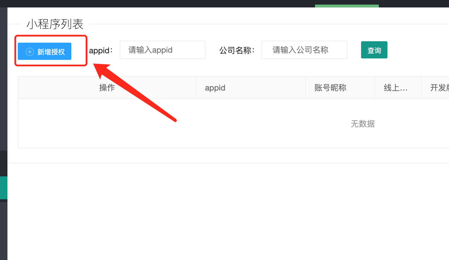 - 在公众号列表内的:操作 列 会有新增授权 按钮