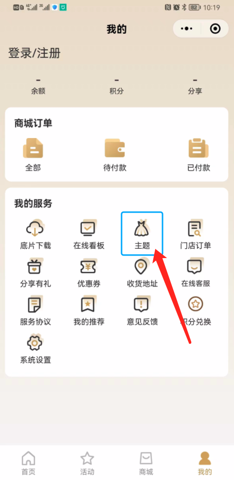 开启后,会员小程序发布后,即可在我的内,看到服装预选的入口,入口名称为:主题