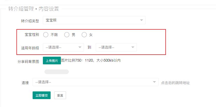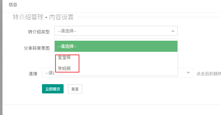 转介绍类型选择孕妈照 会出现下图红框中选项