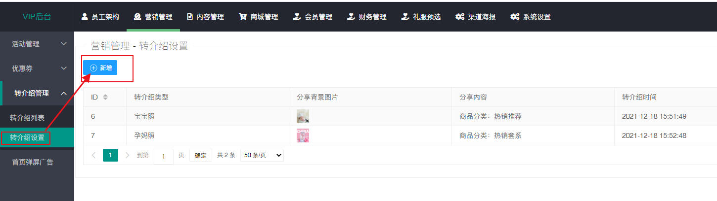 点击“新增” 按照弹窗要求 编辑转介绍内容