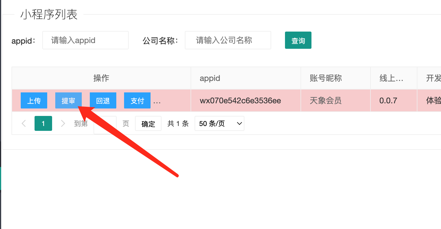 4.上传成功后,点击提审按钮,提示提交成功,即提审成功。