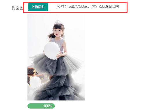 封面图 点击“上传图片” **即可上传封面图片 尺寸:500x750 像素 (宽x高) 图片大小≤500KB