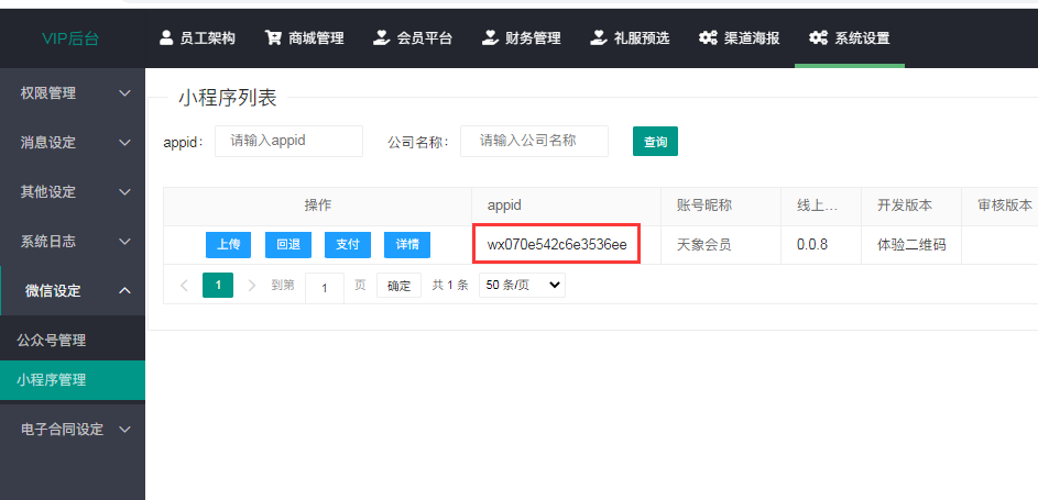 - 小程序PPID:wx070e542c6e3536ee(注意:这块写各客户天象云小程序的id)