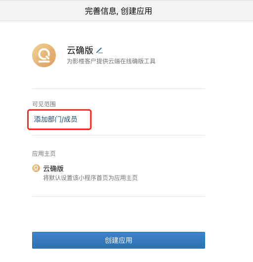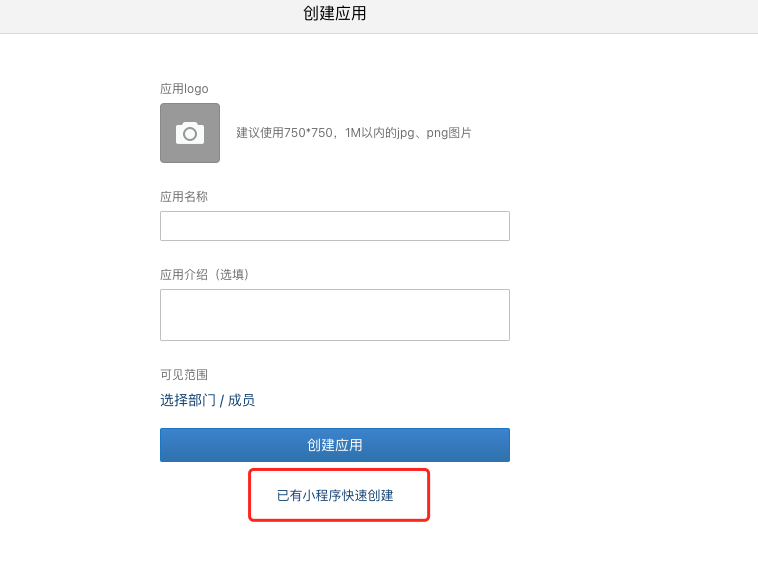 目录 搜索 展开 首页基础管理帐号注册帐号登录组织架构集团配置门店配置部门配置岗位管理权限管理公众号授权及管理授权公众号取消授权绑定开放平台帐号小程序授权及管理公众号快速注册小程序授权已注册好的小程序小程序信息完善使用小程序客服登录小程序后台开通小程序支付设置小程序登录邮箱及密码设置小程序支付信息删除小程序绑定开放平台帐号申请开通地理位置权限修改小程序授权信息小程序缺少权限的排查及处理小程序升级绑定公众号菜单小程序订单中心路径设置常见问题上传代码提示上传失败新会员系统内容管理位置内容营销管理活动管理活动列表报名列表优惠券转介绍管理首页活动弹屏广告会员管理会员列表会员机制底片下载商城管理评价管理整体流程入口设置开启评价评价设定商品管理商品列表商品分类云确版入口设置礼服预选入口设置ERP订单自助扫码开单礼服预选结果全局配置后台操作说明礼服分类礼服等级礼服设定礼服订单自助扫码开单吾优云帐号管理商户注册帐号审核客人帐号订单管理充值管理计费方式消费管理帐户余额消费记录上传客户管理已上传客户列表删除底片修改密码上传管理创建帐号发送微信消息新上传服务下载管理公众号入口配置windows客户端平台MAC平台网页下载到期提醒企微微信简介后端管理授权企业微信员工帐号开通消息群发朋友圈群发获客二维码标签管理作战包管理授权小程序到企微聊天工具栏使用工具栏配置帐号登录关联客户手机号客户基本信息客户标签关联非当前手机号订单开立新单客户排档快递查询电访一键建群常见问题帐号无法登录主体问题附件文档 暂无相关搜索结果! 阅读次数:32 本文档使用 MinDoc 发布 授权小程序到企微 登录企微后台 在下方找到自建应用区域,然后点击:创建应用 在创建应用界面点击:已有小程序快速创建 使用小程序管理员扫码进行授权(如果授权的是素玄的应用,请联系素玄工作人员) 扫码后,选择对应要授权的小程序小程序 扫码确认完后,在电脑端设置好授权的应用的可见范围,建议设置为全部部门可见。 作者:宋德美 创建时间:2024-07-12 16:09最后编辑:宋德美 更新时间:2025-04-21 10:05 提交评论
