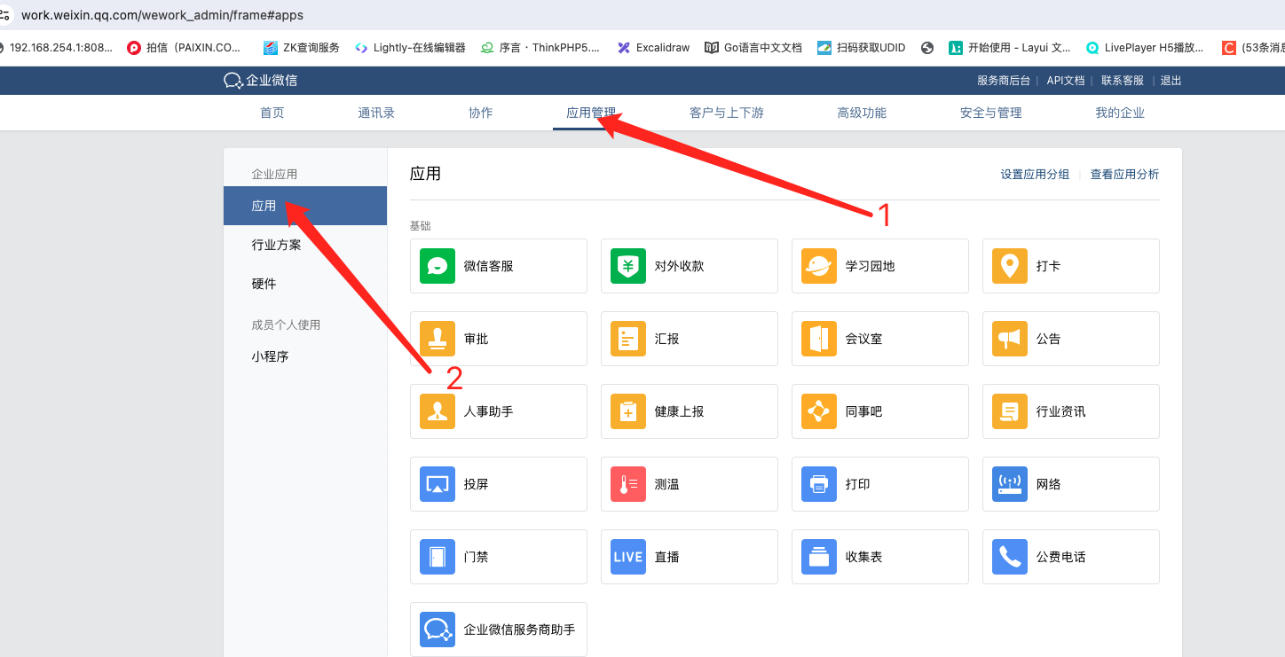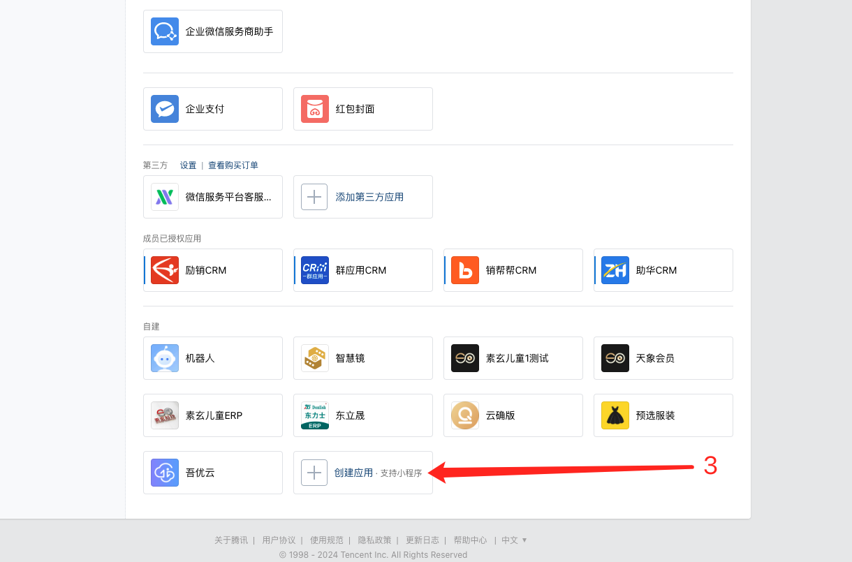 登录企微后台,进入应用管理,在自建应用里,点击创建应用: